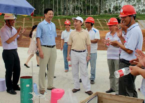 在施工現(xiàn)場,黃華寬書記認真聽取了項目建設(shè)情況的匯報,對欽崇高速公路建設(shè)總體情況表示滿意。他強調(diào),欽崇高速公路是崇左乃至東盟通往北部灣經(jīng)濟區(qū)的重要通道,各單位、各部門一是要在確保質(zhì)量和安全前提下,加快欽崇高速公路項目建設(shè)步伐,早日完成通車目標任務(wù),促進陸路東盟經(jīng)濟產(chǎn)業(yè)快速發(fā)展;二是要在建設(shè)好欽崇高速公路項目的同時,科學(xué)規(guī)劃,合理布局,完善其他各項基礎(chǔ)設(shè)施建設(shè);三是要為崇左至靖西高速公路這條西南大通道做好充分的準備工作,力保項目順利開工建設(shè)。