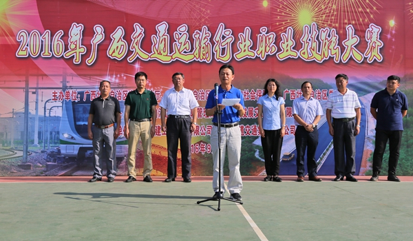 自治區(qū)交通運輸廳總工程師王劼耘在2016年廣西交通運輸行業(yè)職業(yè)技能大賽開幕式上致辭