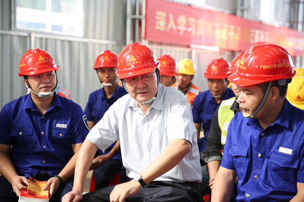 在作業(yè)一線,王躍飛主席結(jié)合企業(yè)實(shí)際情況,與現(xiàn)場員工及作業(yè)工人深入淺出的講解黨的十九大精神,讓黨的十九大精神在基層落地生根。王躍飛指出,黨的十九大對(duì)中華民族乃至每個(gè)老百姓的命運(yùn)十分重要、關(guān)鍵,會(huì)議選舉出了以習(xí)近平總書記為核心的領(lǐng)導(dǎo)集體,確定了習(xí)近平新時(shí)代中國特色社會(huì)主義思想,確定了新的發(fā)展規(guī)劃。王躍飛表示,當(dāng)前我國的奮斗目標(biāo)是建設(shè)成為富強(qiáng)、民主、文明、和諧、美麗的社會(huì)主義現(xiàn)代化強(qiáng)國,我國的社會(huì)主要矛盾也已經(jīng)轉(zhuǎn)化為人民日益增長的美好生活需要和不平衡不充分的發(fā)展之間的矛盾,我們要對(duì)這些新論斷,新理念有清醒的認(rèn)識(shí)。在宣講過程中,王躍飛用通俗易懂的語言對(duì)黨的十九大主要內(nèi)容進(jìn)行了精彩的講解。