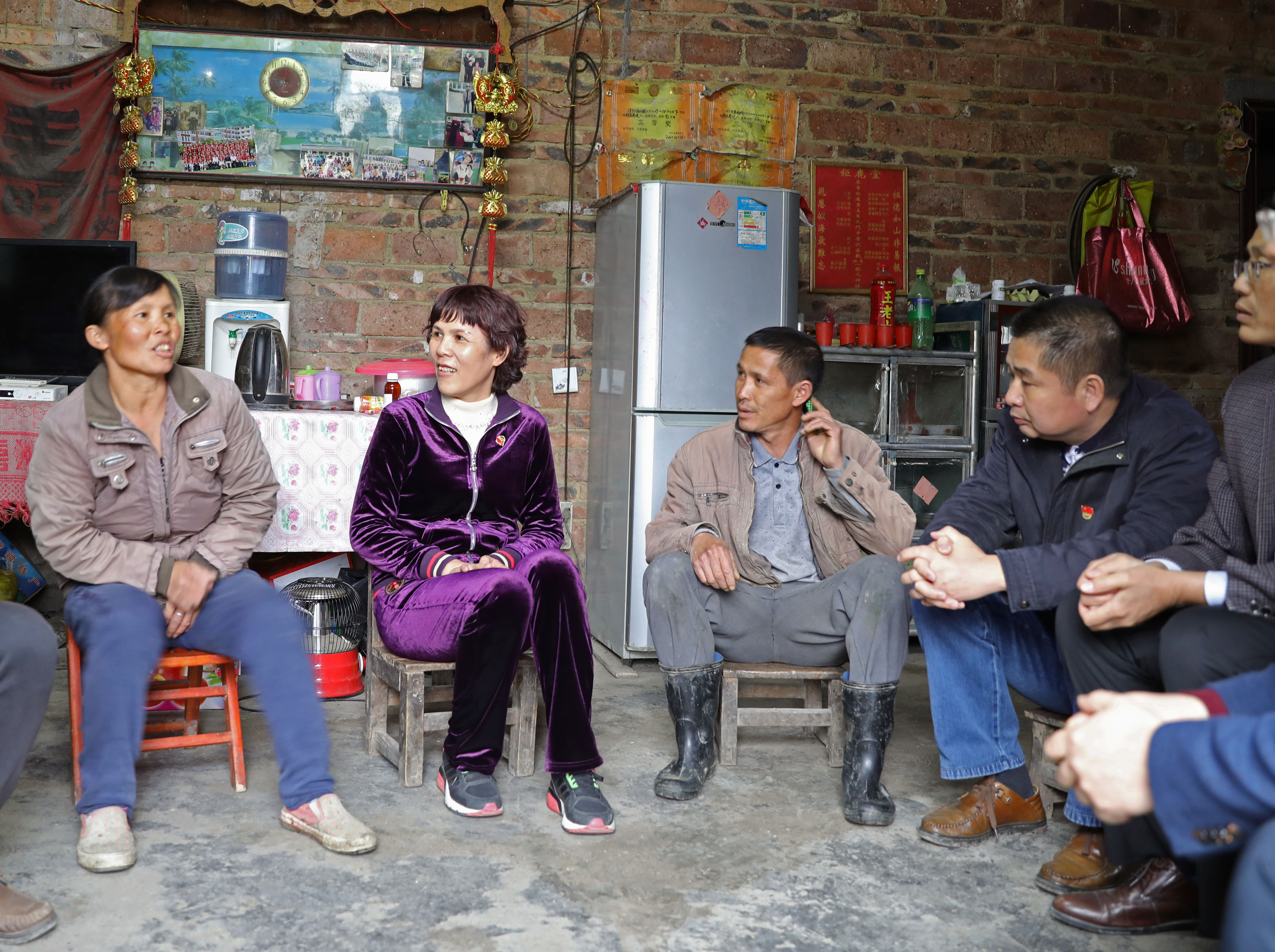 圖為翔路公司扶貧工作組負責(zé)人入戶了解貧困戶生活狀況