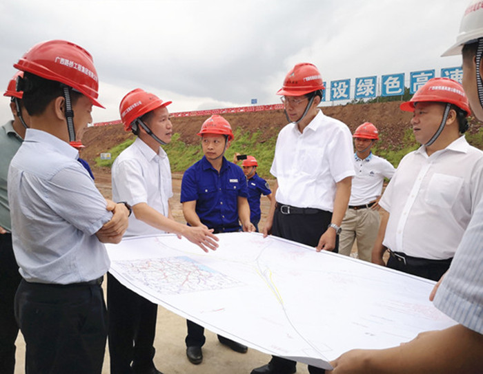 7月13日下午,自治區(qū)副主席費志榮到賀巴高速鐘昭段同古互通調(diào)研,賀州市市長林冠,自治區(qū)工業(yè)和信息化委巡視員彭健銘、自治區(qū)交通運(yùn)輸廳副廳長王劼耘等同志隨行調(diào)研。集團(tuán)公司黨委書記、董事長朱堅和,集團(tuán)公司副總經(jīng)理李德智,新恒通公司領(lǐng)導(dǎo)藍(lán)日彥、馮學(xué)茂等陪同。