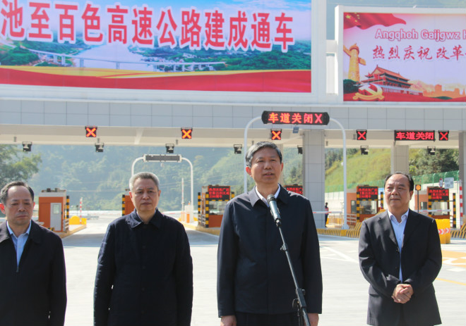 11月28日,河池至百色高速公路正式建成通車(chē),自治區(qū)副主席費(fèi)志榮到場(chǎng)祝賀并進(jìn)行致辭。